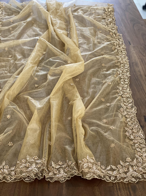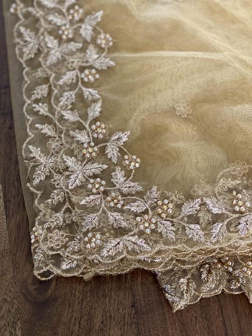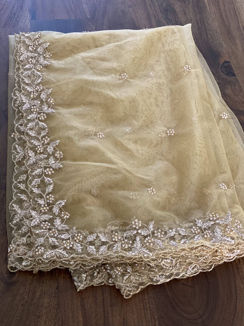 Soft net dupatta with intricate pearl embroidery.